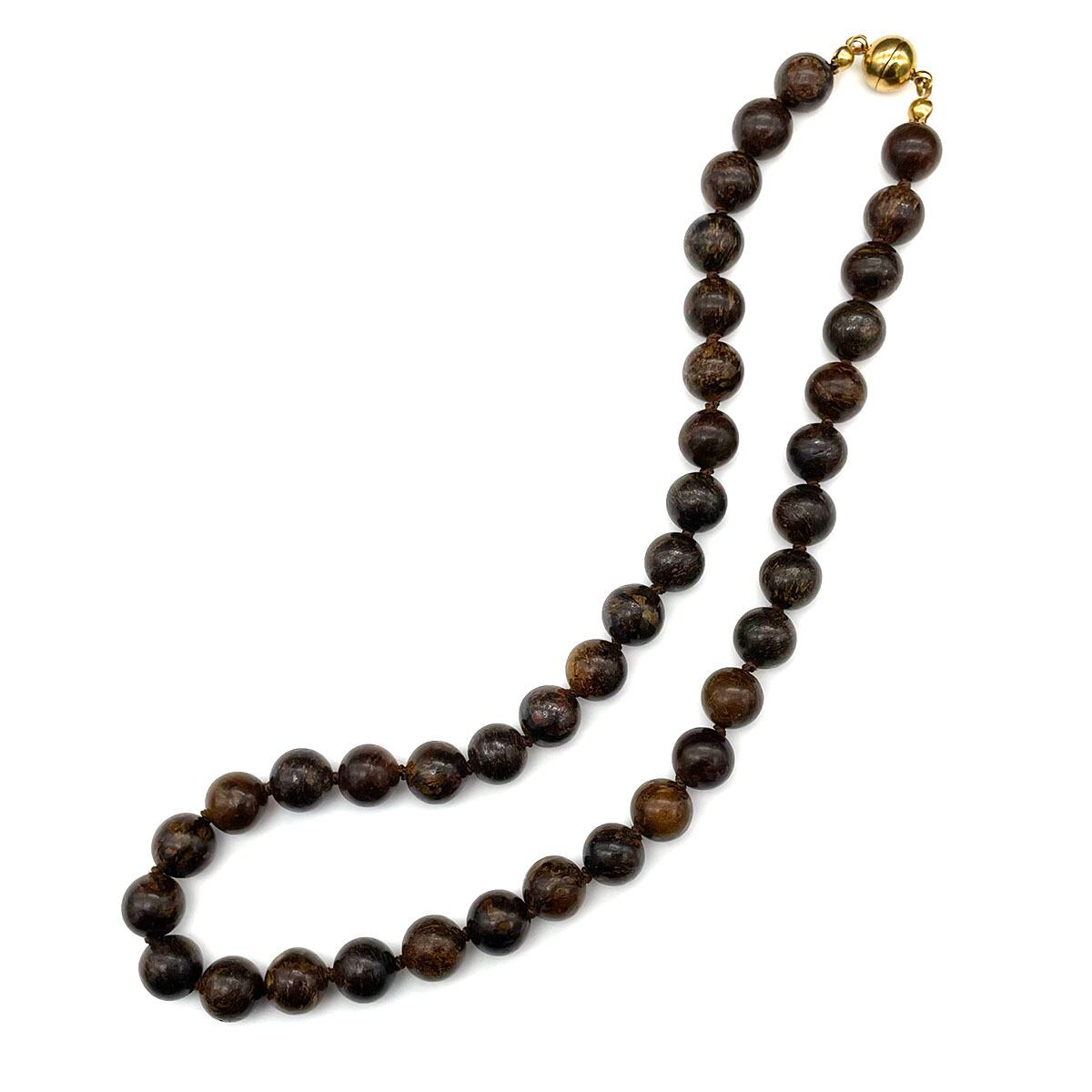 木目のような色合いと、ブロンズを思わせるメタリックな輝きが美しいブロンザイトのネックレス。
