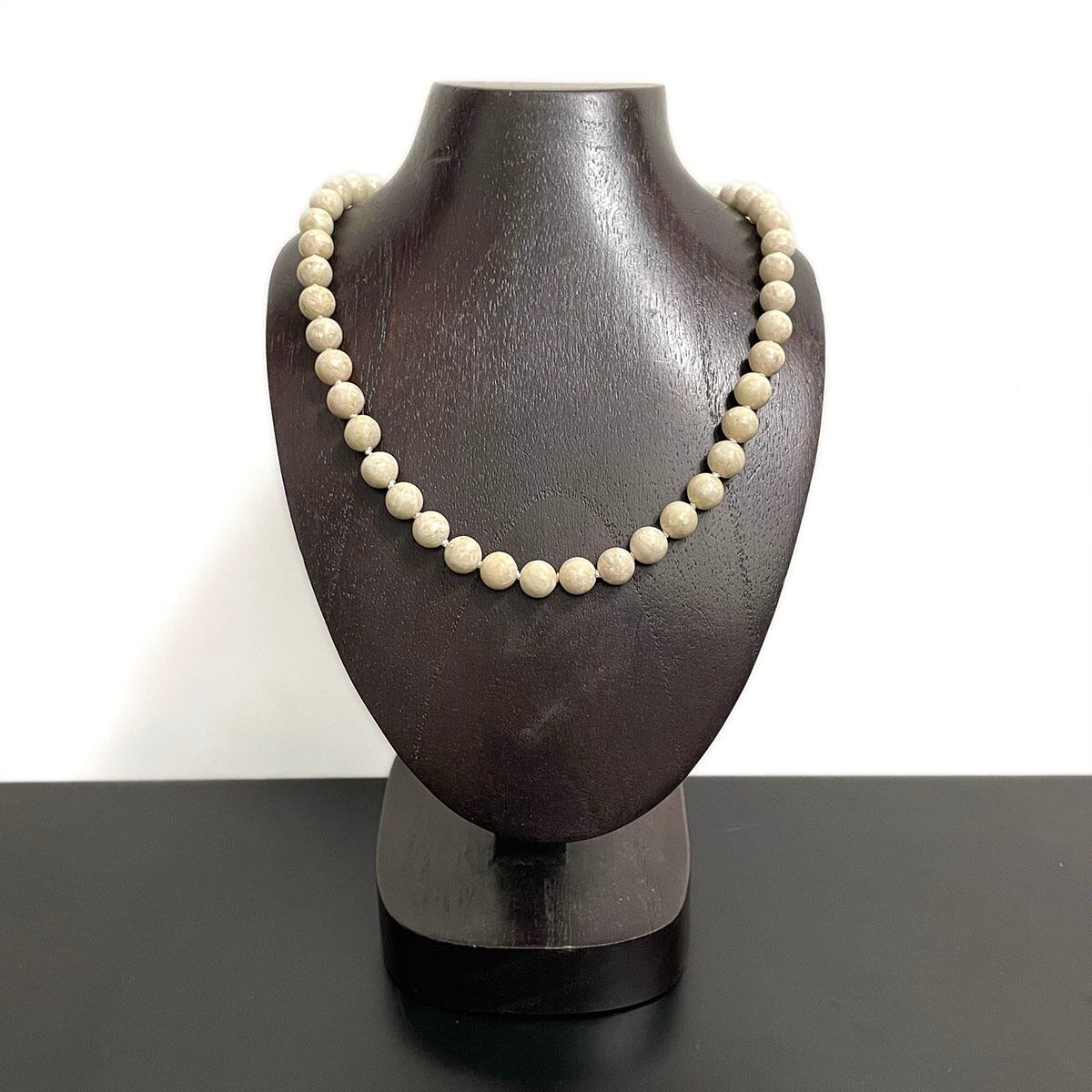 象牙のような温かみのあるアイボリーにマーブル模様が浮かぶ、リバーストーンのネックレス。